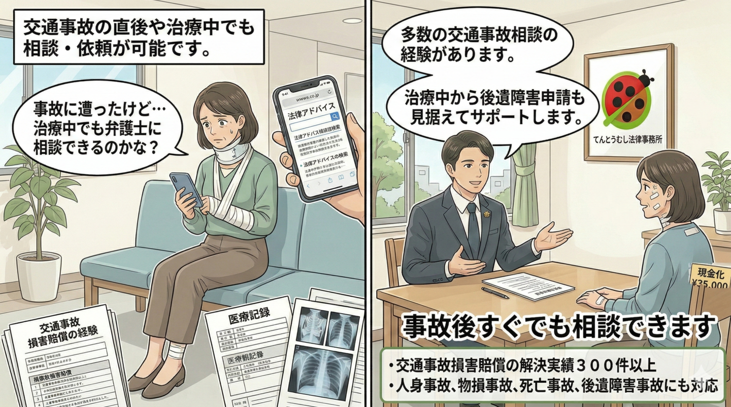 『弁護士法人てんとうむし法律事務所』(埼玉県川口市)に御相談頂いている交通事故被害者の方々の多くは「一番の願いは、自分の体や財産を交通事故前に戻して欲しい」と言われます。
